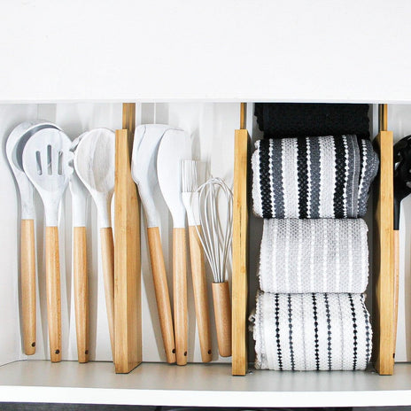 Create a customised and orderly drawer system using drawer dividers. Little Label Co's labels can be added to enhance personalisation, ensuring that each drawer serves a specific purpose. This not only maximises space but also elevates the aesthetic appeal of your kitchen.