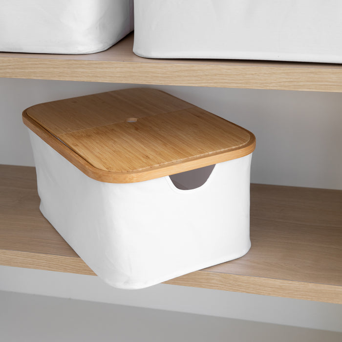 • Bamboo lid consists of 2 pieces making it easily removable and basket easily accessible