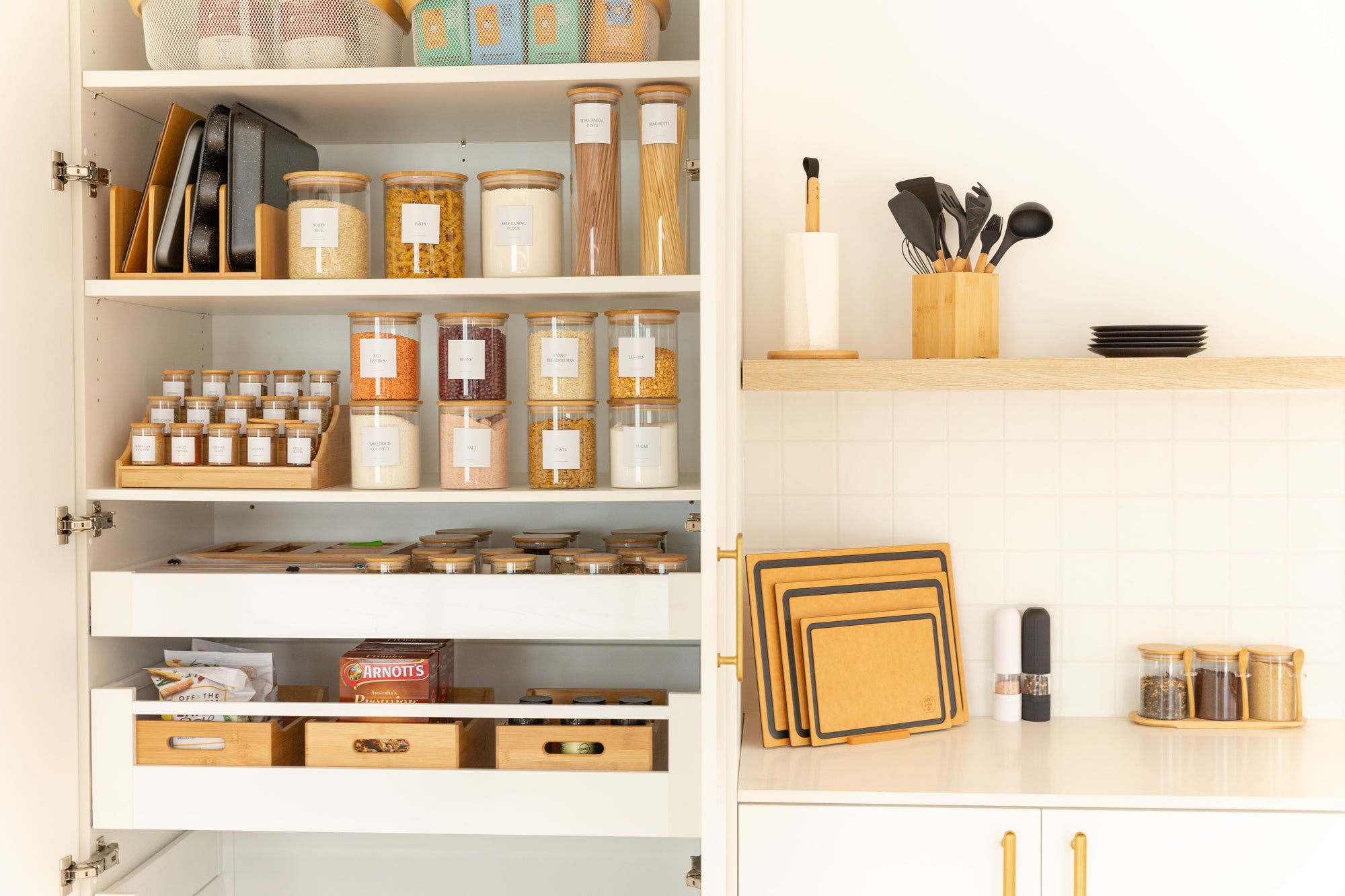 Complete Bamboo & Glass Pantry Organisation Set