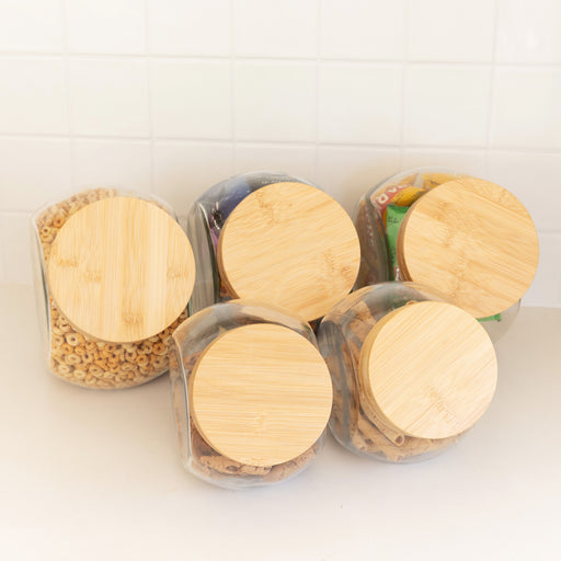 Acacia Wood Glass Jar Small Pantry Organisation Pack
