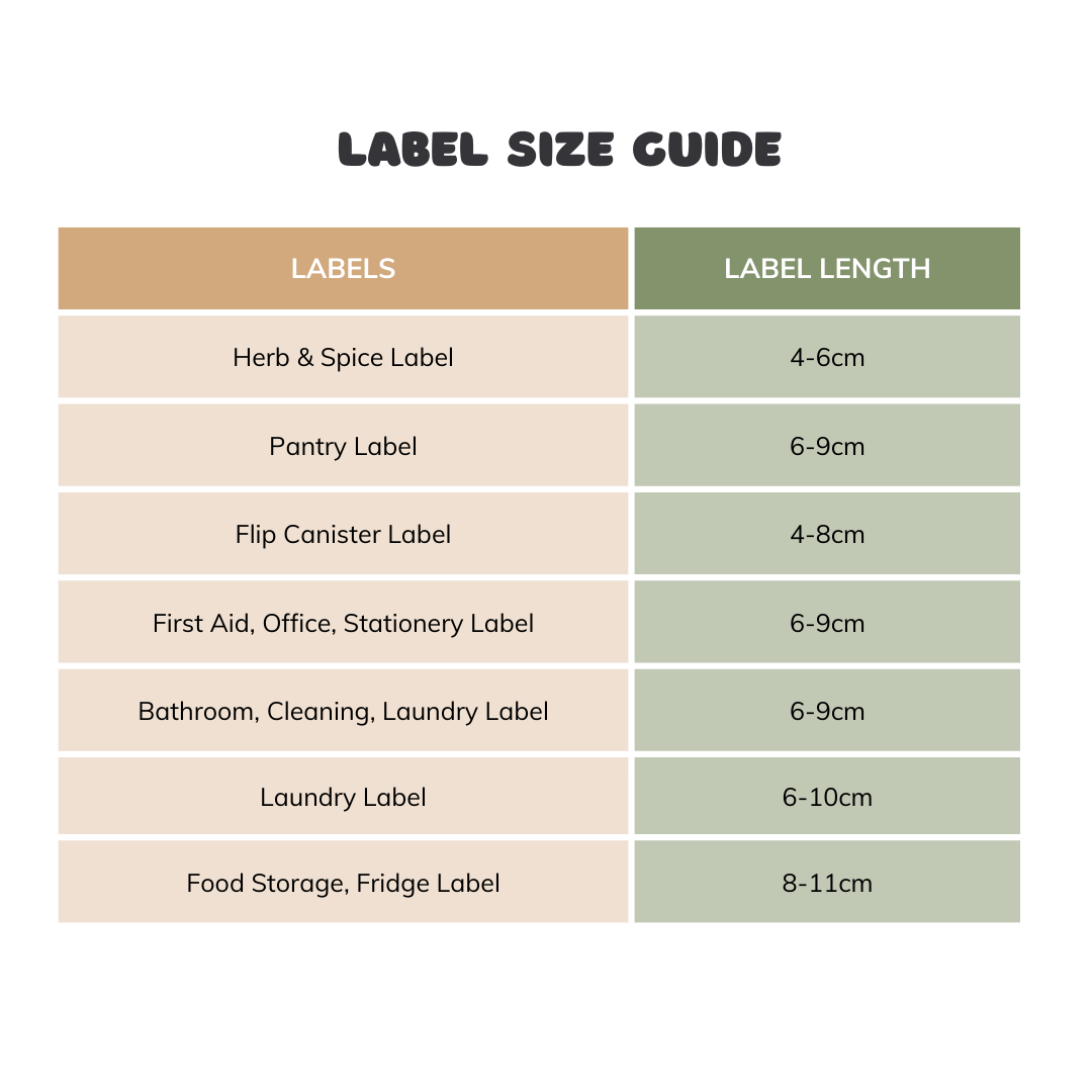 These labels are approx. 3-8cm wide and up to 3.5cm high. This is only a guide as it depends on the font you choose and the length of your words.