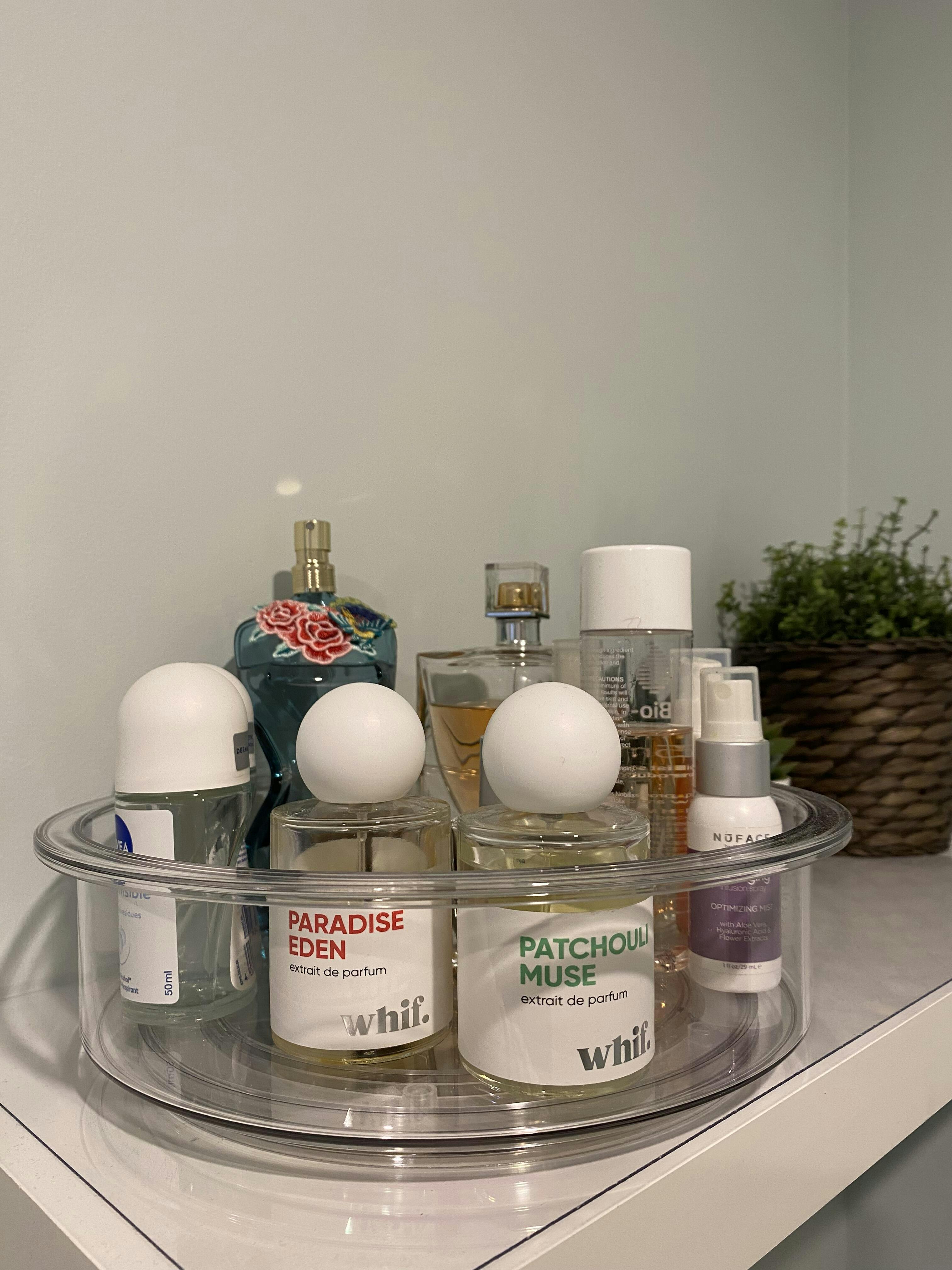Maximise your space and easily access your goods with our durable, clear lazy susan turntable. This versatile product can be used in the kitchen for storing herbs/spice, condiments and jars or in your bathroom for storing cosmetics and toiletries.