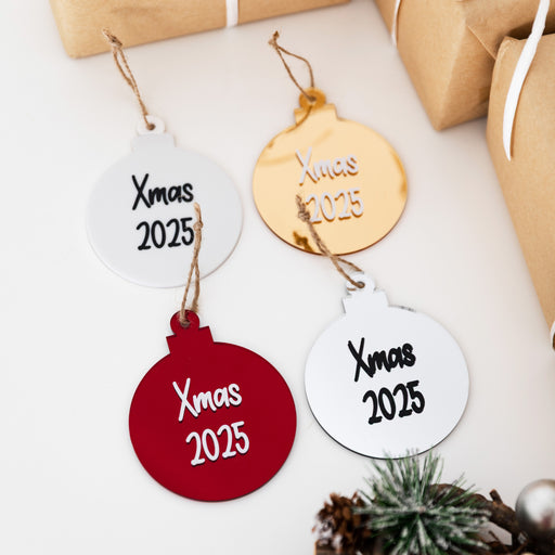 Personalised Christmas Round Acrylic Baubles (with label)