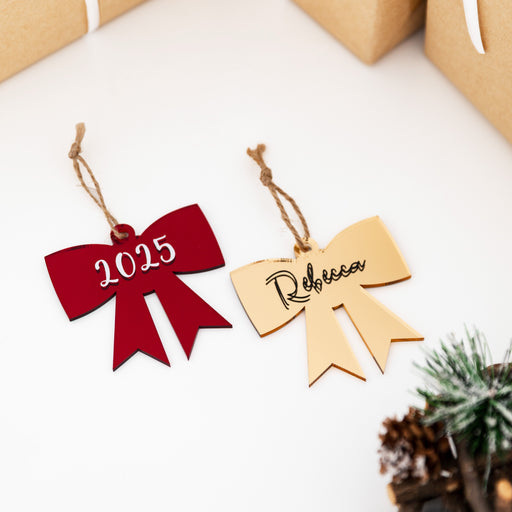 Personalised Christmas Bow Acrylic Baubles (with label)