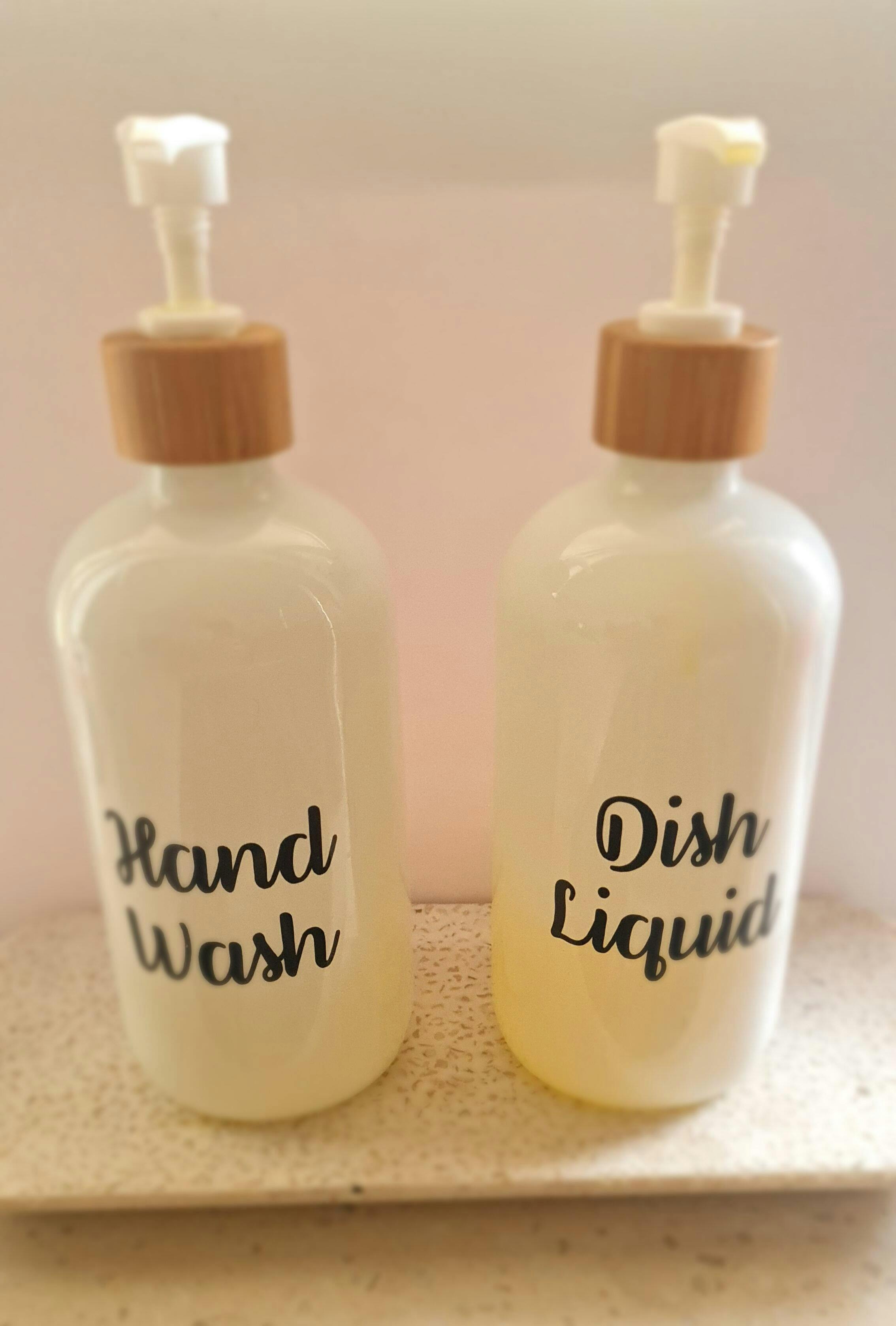 Bring organisation and style to your bathroom, kitchen or laundry with our White Glass Pump Bottle - 500ml soap dispensers.