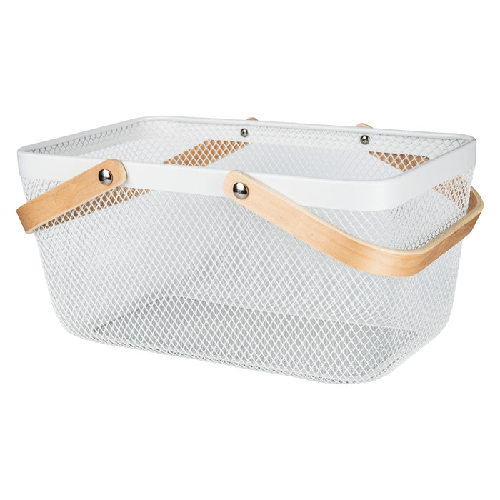 - 2 White Large Handy Storage Basket with Wooden Handle 20cm h x 43.5cm l x 27cm w
