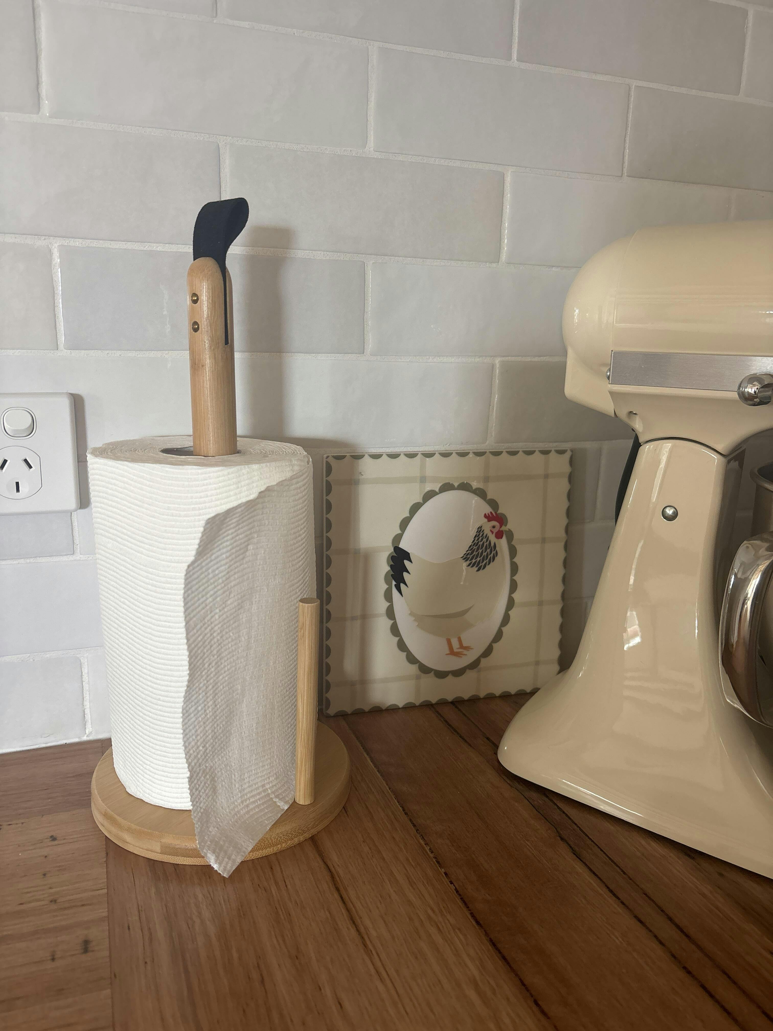 Effortlessly load and unload paper towels with our stylish bamboo & PU leather paper towel holder. Adding sophistication to any bench-top, featuring a towel guard dowel to keep the paper towel from unwinding and surface protector pads on the bottom to prevent scratches. The paper towel holder also features a black PU leather to add a touch of modernism around your kitchen or home and will compliment any style of décor.