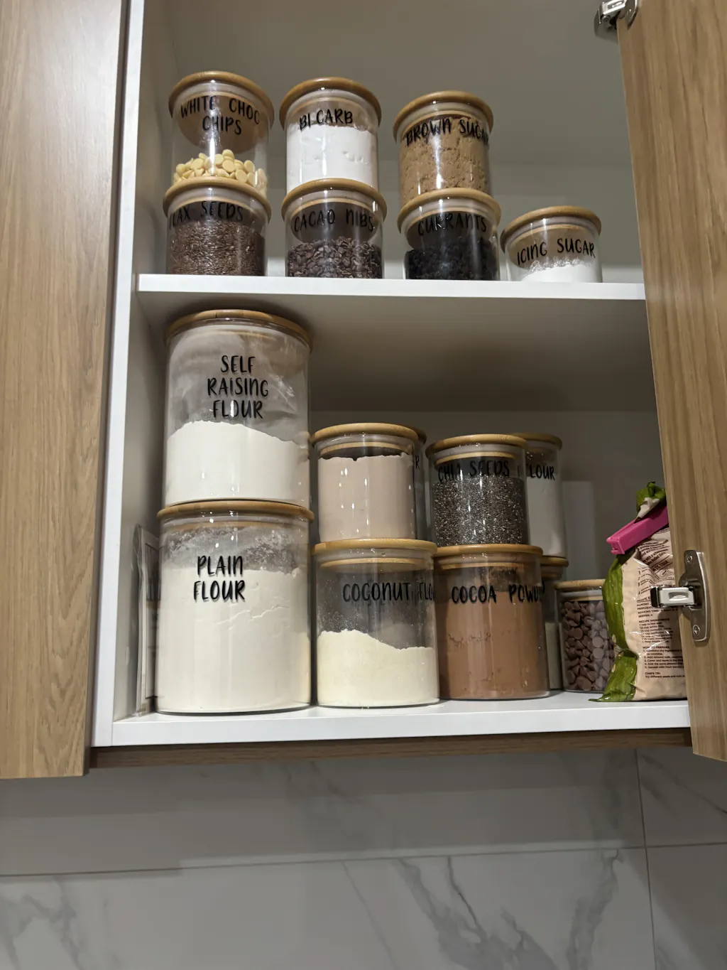 The jars are constructed from high-quality, durable glass allowing ingredients to be identified easily. Features a rubber wood air-tight lid keeping your contents fresher for longer. Jars are dishwasher safe (WITHOUT VINYL LABEL). Hand wash lid only and dry thoroughly before re-using. Use with dry goods only.
