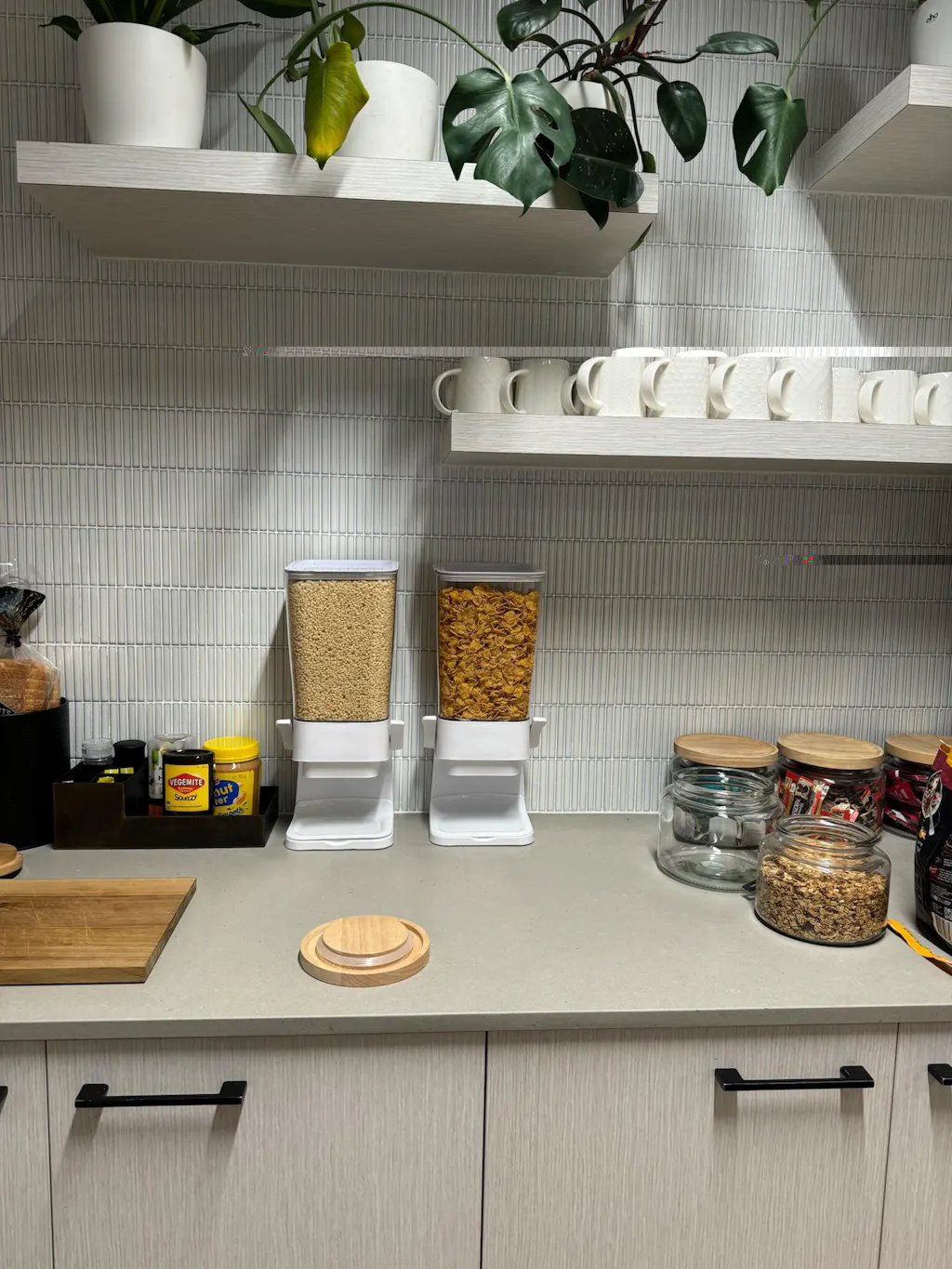 - No more countertop chaos: The cereal dispenser keeps your pantry organised and mess-free. It’s clear container lets you see exactly what's inside, and the compact design minimises clutter.