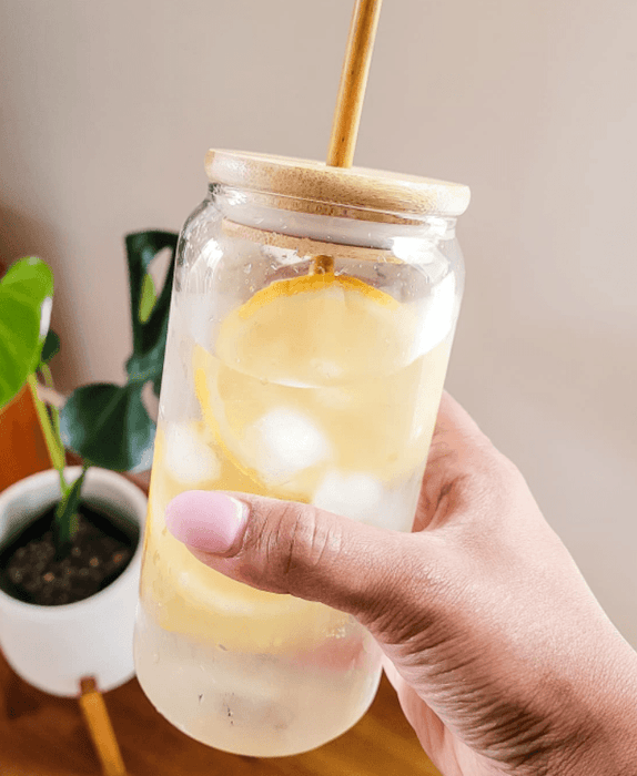 We are so excited to introduce this gorgeous custom designed product to our collection. Use this funky bamboo glass drinking jar to serve up your favourite juices/smoothies. The jar is sustainable, environmentally friendly to use, healthy, non-toxic and super cool! Suitable for hot drinks.