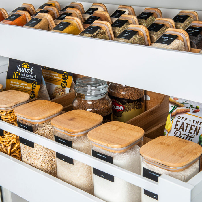 Glass Bamboo Storage Jars come in various sizes, ranging from small 75ml jars that can hold spices to larger 4L jars that can hold pasta or rice.